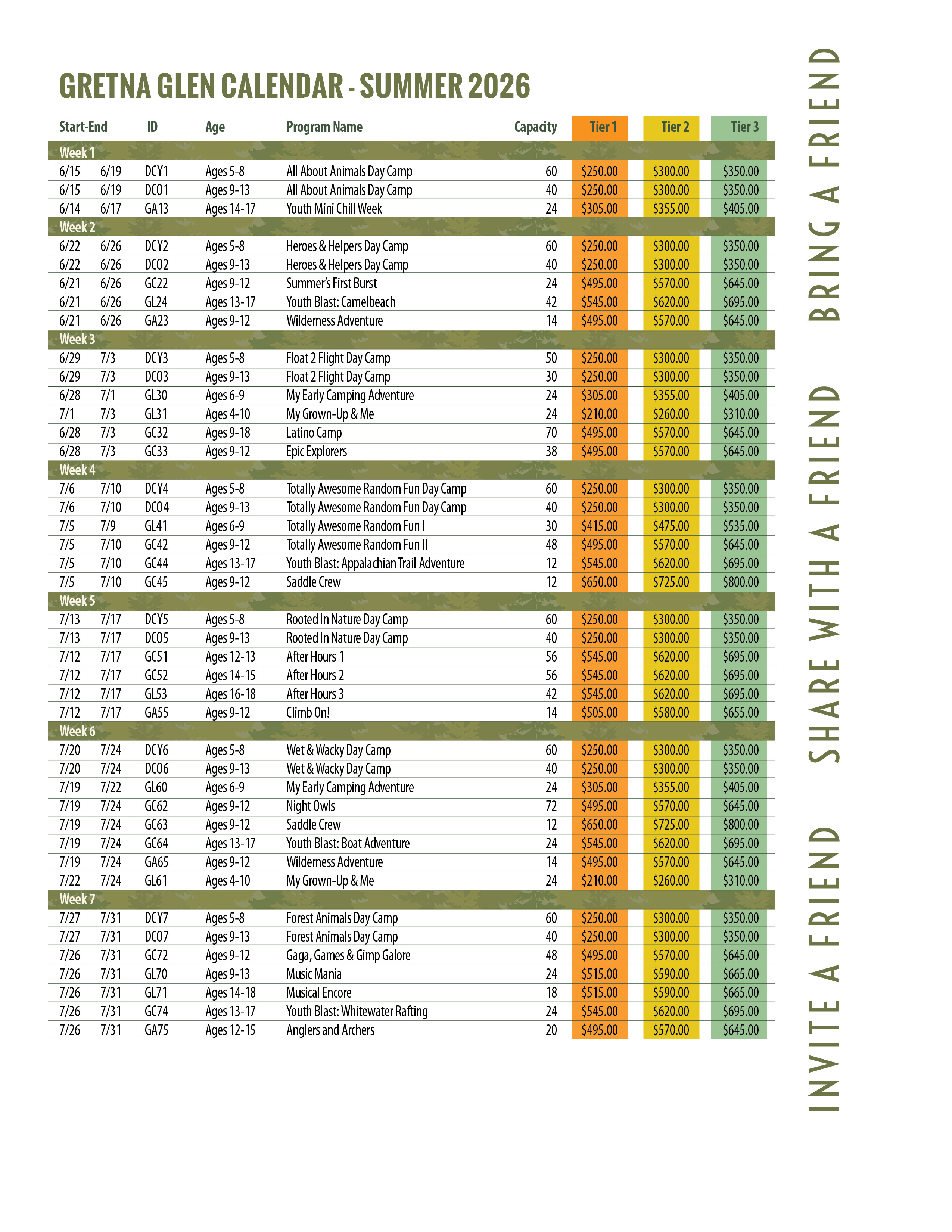 If your camper attended a Gretna Glen summer camp last summer, you may receive a discount on this year’s registration for each new camper you refer who attends a Gretna Glen Summer Camp program.
